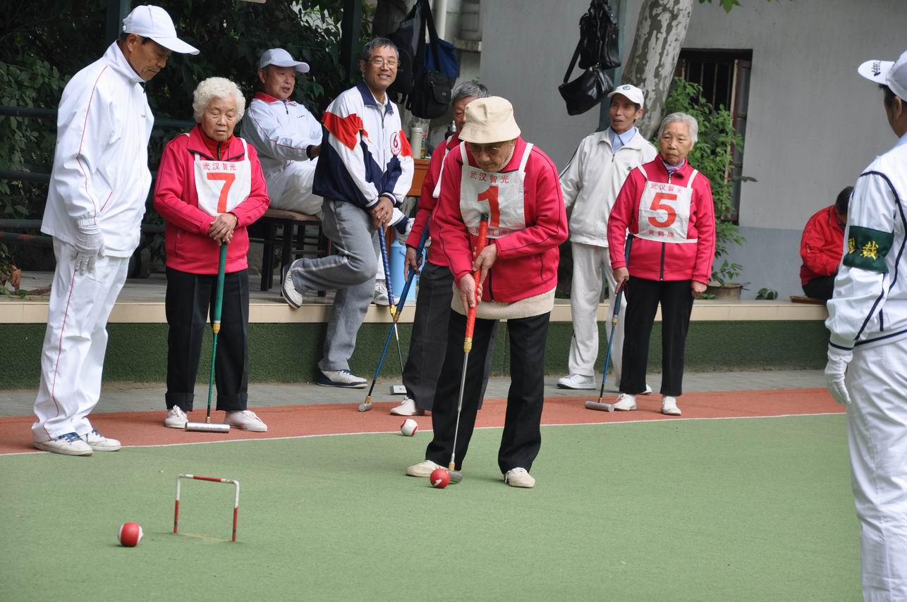 武汉理工大学、中国地质大学、中南财经政法大学等全省12所高校20支队伍参加了本次门球赛。此次比赛分两个阶段在我校东区、北区四个门球场同时进行,在赛场上,老同志们个个神采飞扬,球技精湛,他们一面同场竞技,一面交流切磋,互相鼓励,86岁高龄的中南财经政法大学的1号球员精湛的技艺获得场上阵阵掌声……经过两天激烈的分组循环赛及附加赛,远道而来的三峡大学获得了本次比赛冠军。