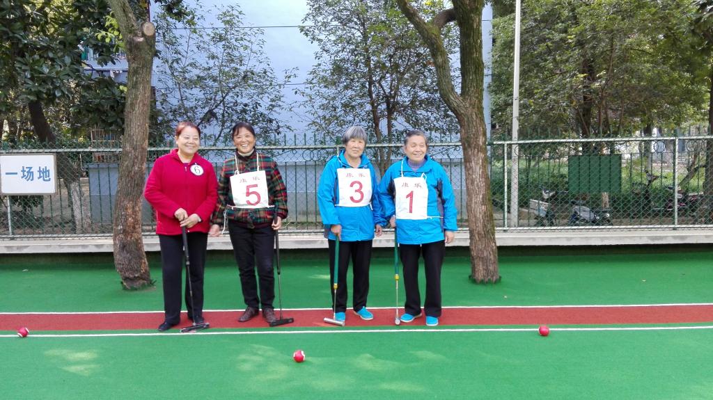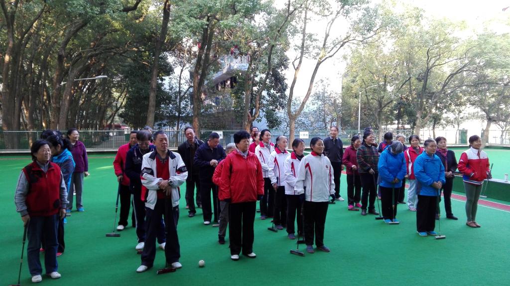11月2日,学校东区门球场热闹非凡,来自五个兄弟单位的运动员们欢聚在这里,在绿树林中,在新建的草坪上,伴着秋阳与蓝天,共同庆祝学校新场地落成门球友谊邀请赛。