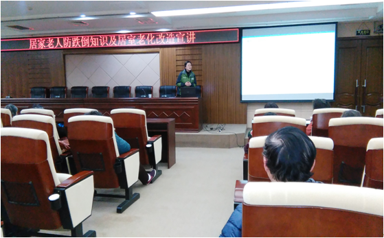 上午,社区在国际交流学院逸夫会议中心举办老人防跌倒和居家无障碍讲座,吸引了社区党员、栋长及学校退休职工积极参与。讲座以多媒体形式,生动讲述了着装、饮食、运动、疾病等方面的老人养生常识,并告诉老人如何防止摔倒,如何让居家环境更能保障老年人的安全等等。现场工作人员给与会老人派发了养老宣传册和宣传单。