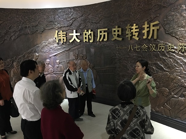 在讲解员的引领和介绍下,老同志依次参观了再现八七会议历史的300多件文物、照片和珍贵历史资料,对毛泽东同志“枪杆子里面出政权”著名论断的历史背景有了更加清楚的了解,对党在八七会议上及时纠正大革命后期严重错误、确定开展土地革命和武装反抗国民党反动派的正确方针有了更加深刻的理解,对党不畏艰险、力挽狂澜、挽救中国革命于危难之中的历史抉择有了更加清醒的认识。