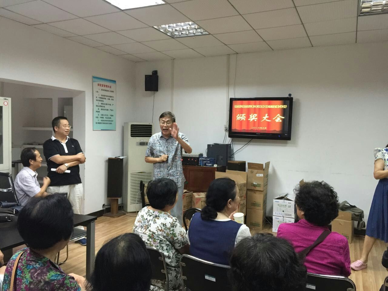 最后,本次活动裁判长程光明同志宣布了比赛成绩,校老协会长杨新起、副会长谭根稳、吴爱芝、徐汉云、离退休工作处肖异清副处长等同志为参赛队员颁发了奖品。