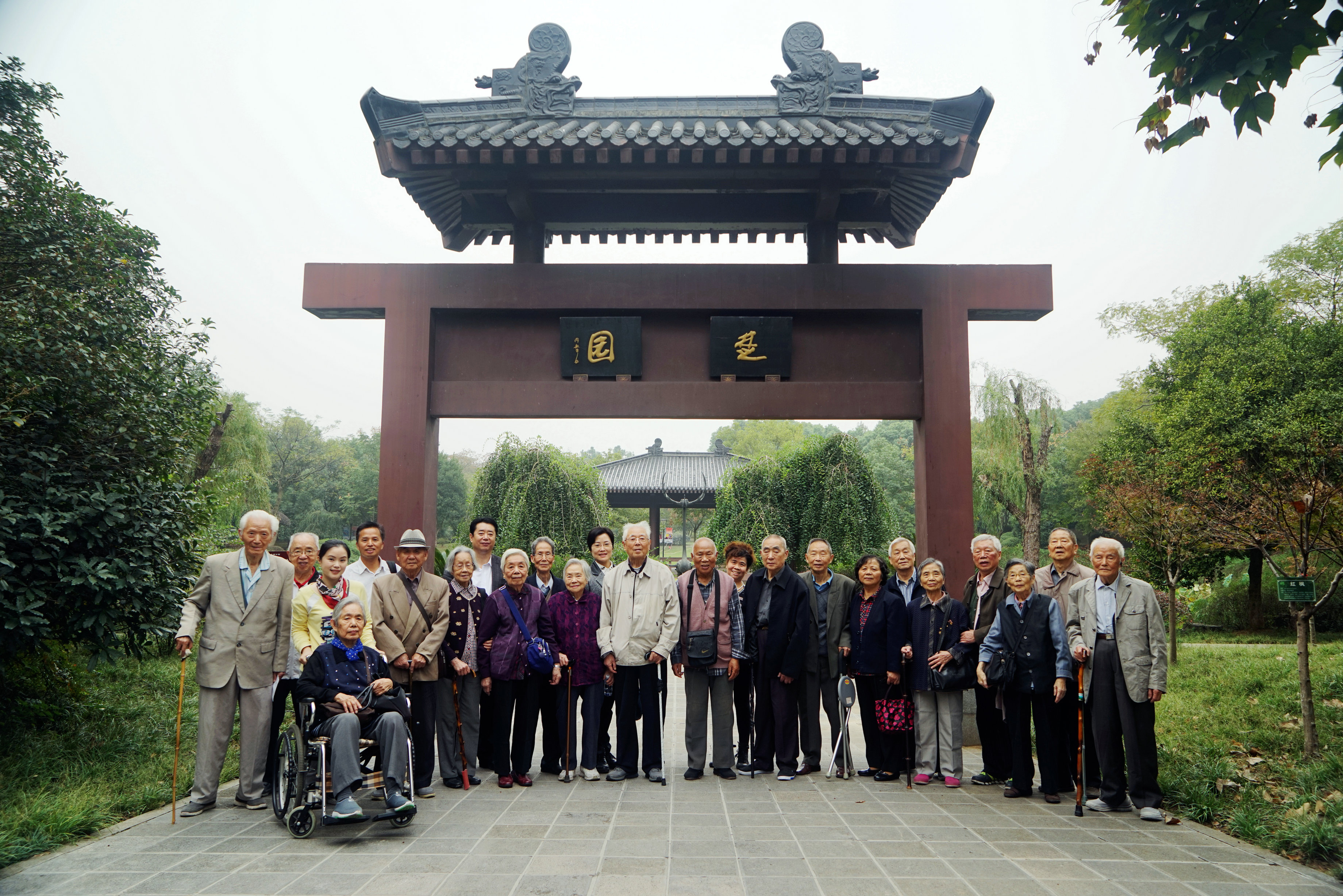入得园内,老同志被眼前繁茂的植物,开阔的湖面,优美的景致所吸引,令人耳目一新。漫步在人工绿道上,老同志先后游览了楚园、高山流水、芙蓉园、四邑轩等园林景观,并在楚园前驻足留影。老同志对汤湖成为市民及企业职工开展文化娱乐活动、休闲健身的重要场所赞不绝口,对逐渐形成的“大汤湖”绿色生态文化旅游区留下深刻印象。