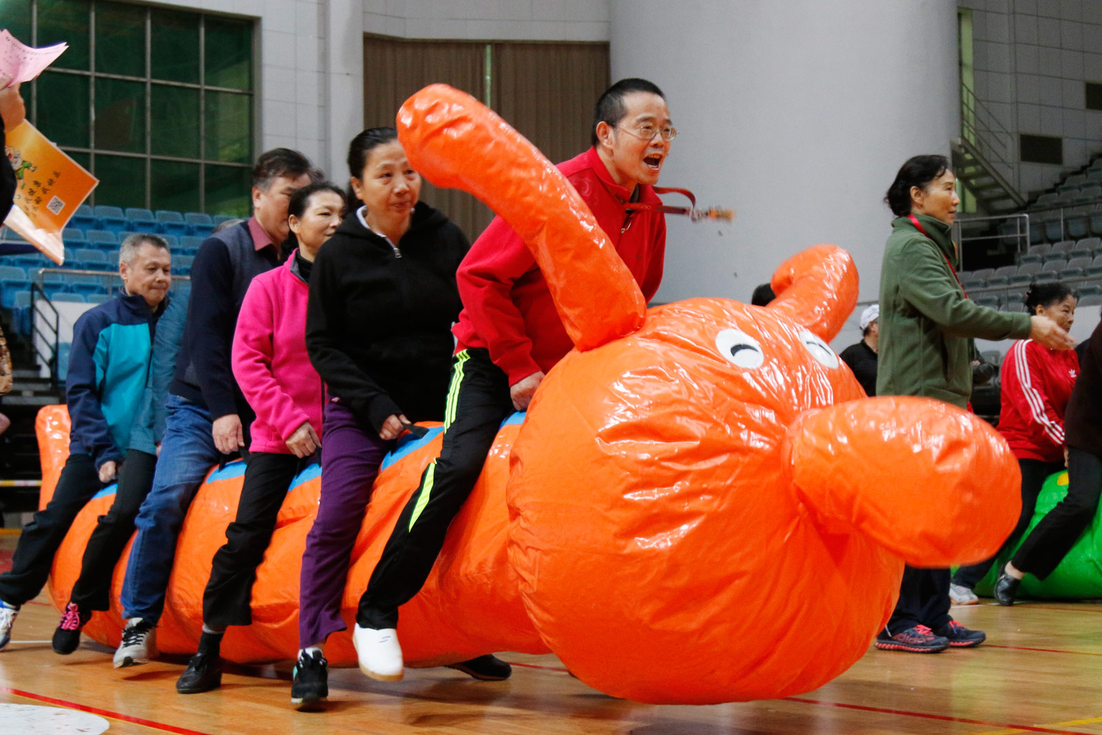 运动会共设有一个集体项目和十二个个人单项,按与会运动员年龄分为三个组别参与比赛,其中男女丙组皆为80岁以上的高龄老同志。集体项目骑行毛毛虫吸引了来自16个院系单位的组队参与,该项由十名运动员共同骑行一只充气毛毛虫,最短时间通过规定距离的队伍获胜,比赛现场助威声此起彼伏,参赛运动员默契配合,现场气氛异常热烈。个人单项包括飞镖、投羽毛球、夹乒乓球等一系列充满趣味的竞赛项目,运动员分组参与比赛,在各个项目大显身手,比赛过程妙趣横生,还吸引了不少未报名的老同志临时要求参与体验,组委会也进行了统一安排,充分满足老同志需求。赛后老同志们自发围聚热烈探讨,向稍后比赛的运动员分享经验,或是彼此分享参赛心得,比赛会场一片欢声笑语。不少老同事表示比赛项目设置合理,参与过后余兴未尽。