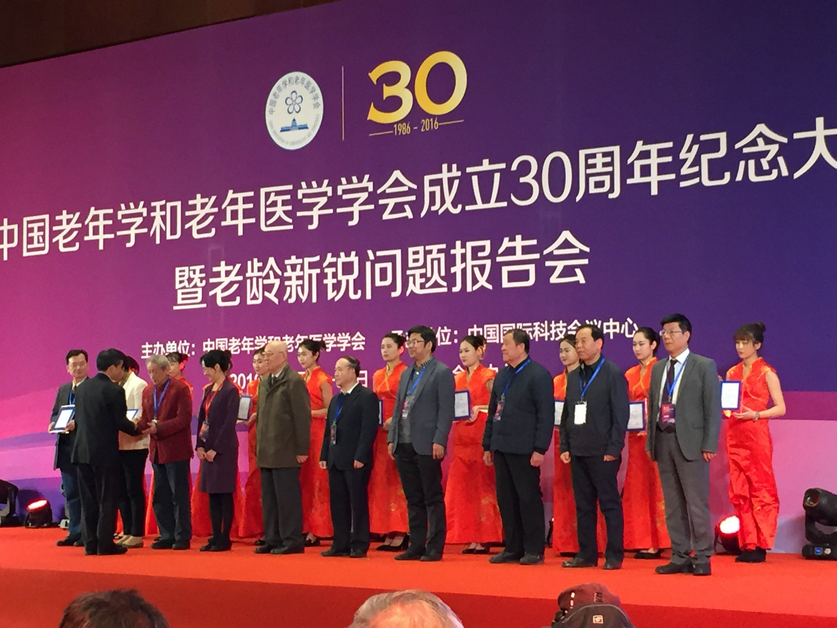 中国老年学和老年医学学会成立30周年纪念大会暨老龄新锐问题报告会和2016年综合学术论坛于2016年10月29—30日在北京国家会议中心隆重举行,来自全国各省、市、自治区的老年学学会代表、研究老年学和老年医学的专家、学者和老年工作者3000余人齐聚一堂,就老年学和老年医学的相关问题进行深入探讨,介绍研究成果,分享成功经验。应大会组委会邀请,华中师范大学老龄问题研究中心专家杨新起、李旭初、李谟介、何芳珍、石丹林、郑晓边和离退休工作处工作人员一行8人前往参加。