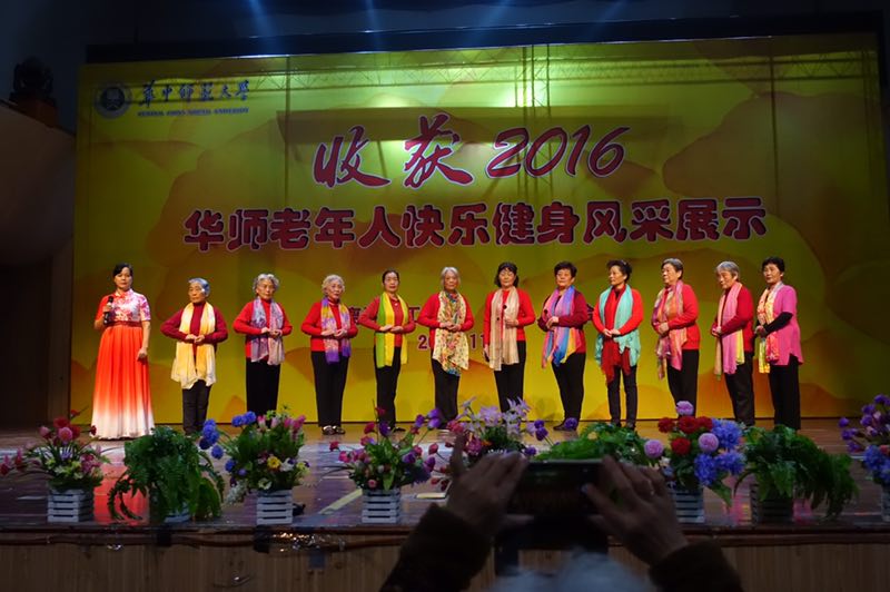 2016年11月16日上午,华中师范大学老年人快乐健身展演在校音乐厅隆重举行。本次活动由华中师范大学离退休工作处、校老年人协会、老年大学共同组织承办。校党委副书记黄晓玫、离退休工作处处长纪红、校老协会长杨新起等相关领导出席本次展演。