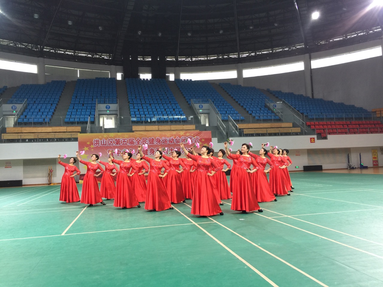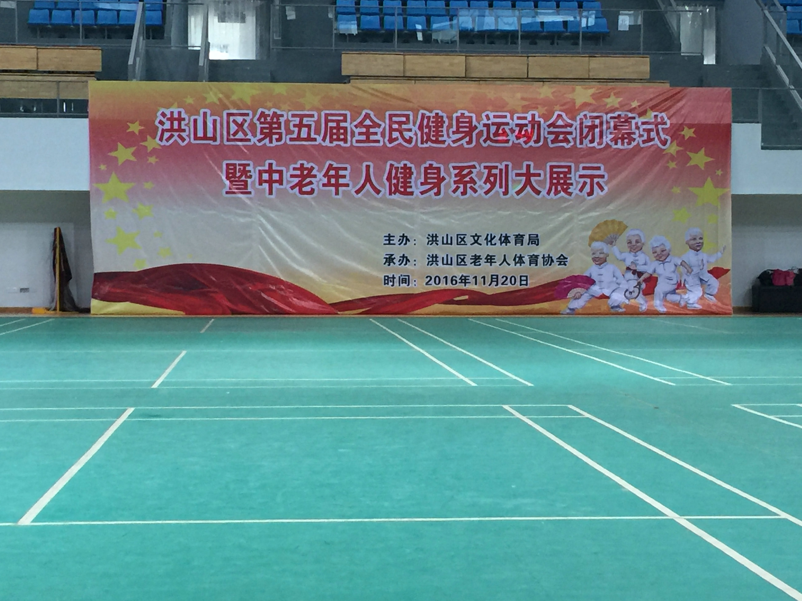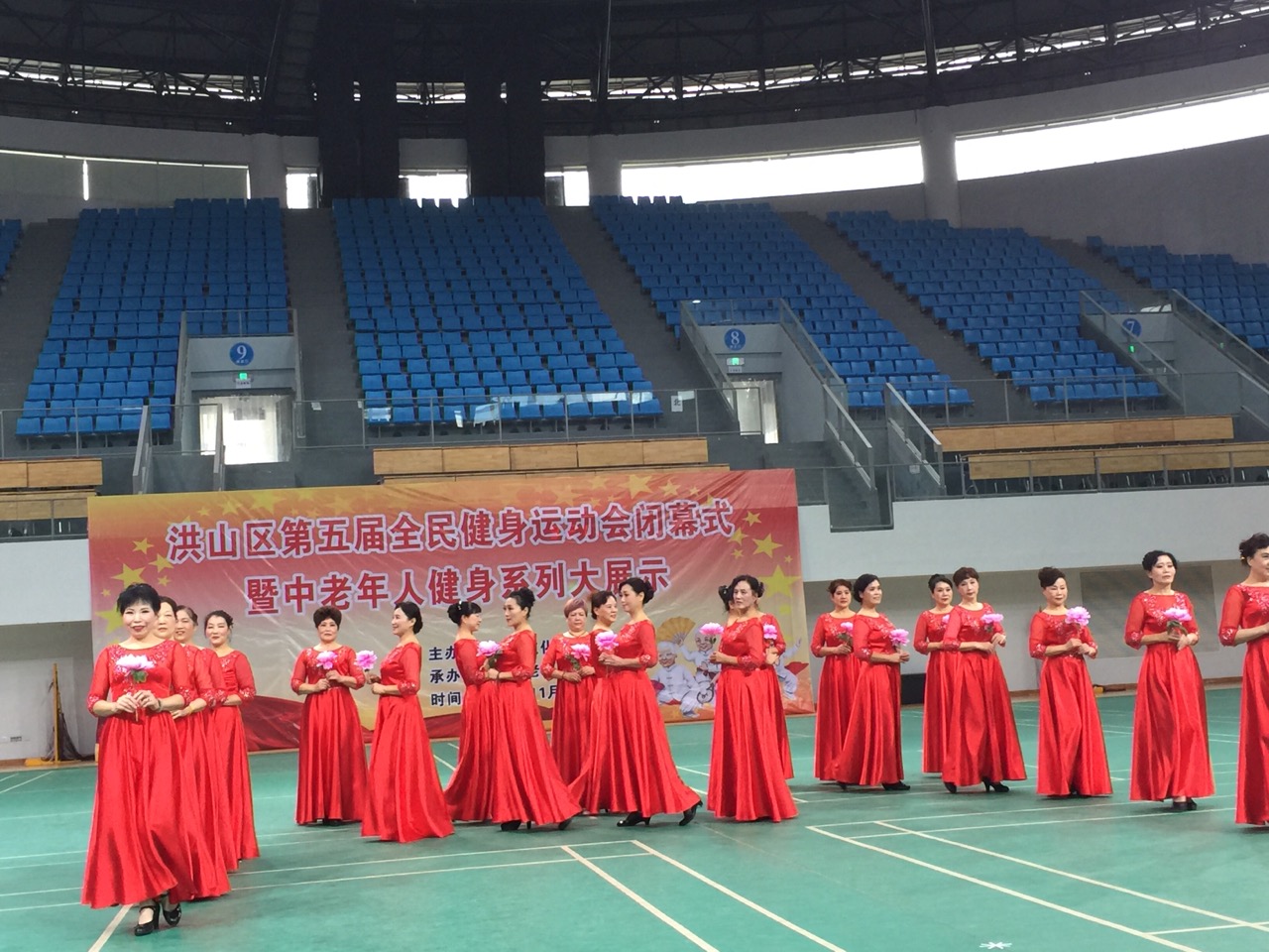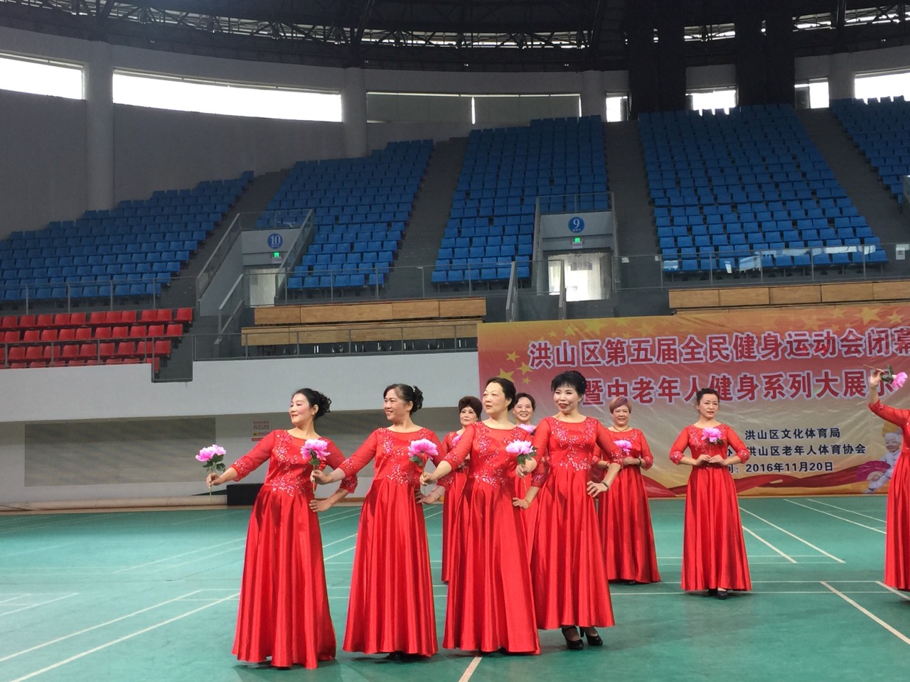 2016年洪山区第五届全民健身运动会闭幕式暨中老年人健身系列大展示在武汉理工大新体育馆举行。