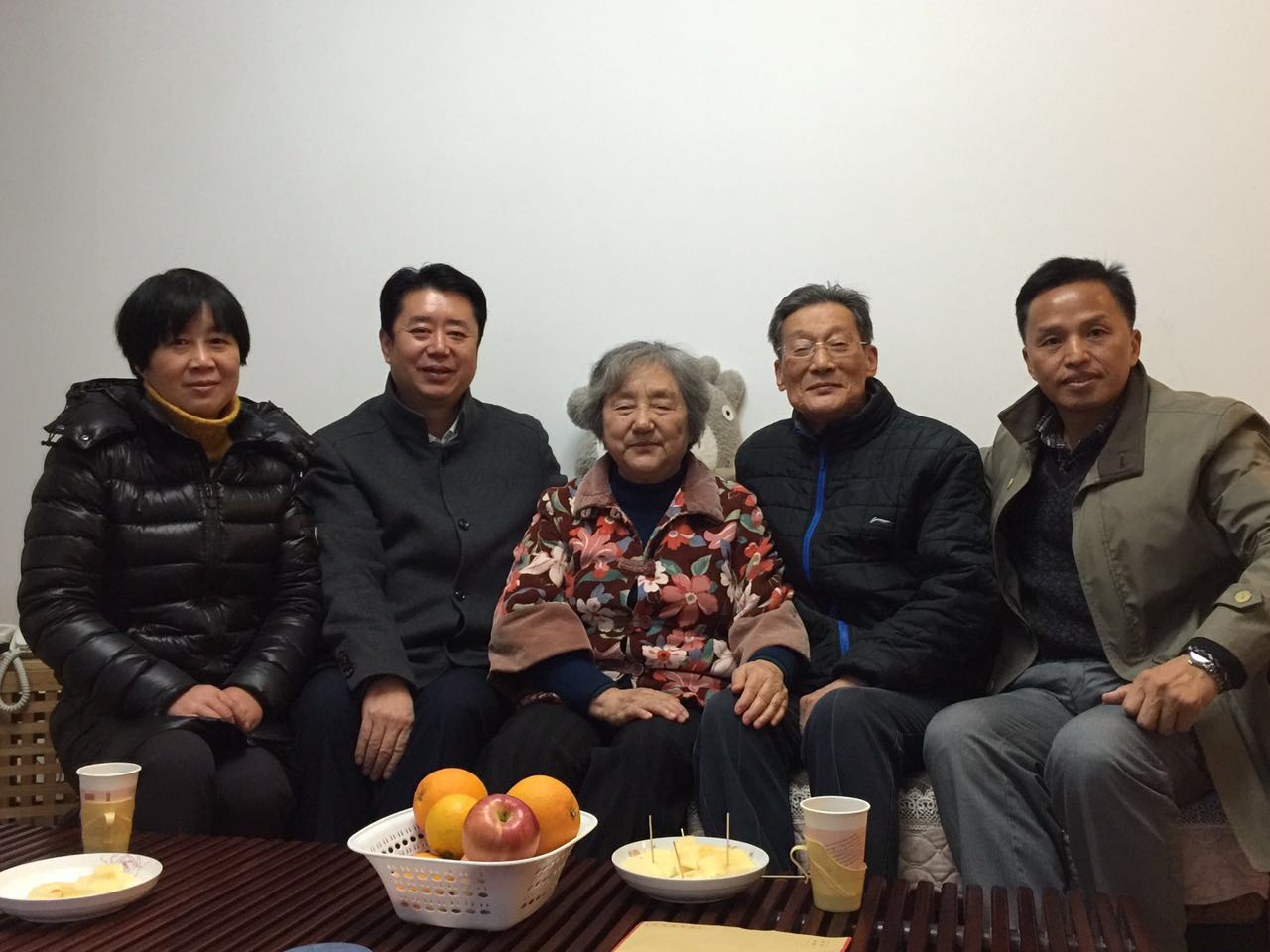 第一站我们看望了居住在苏州的原校党委副书记戴谱生。戴书记早早候在寒冷的大楼外等着,一进戴书记家,全家人都在大门口欢迎我们,如同迎接久别的亲人。全家人对我们的到来深感高兴,戴书记对校党委、校行政及处领导的关心慰问深感温暖,询问学校的一些老同志的近况,并谈到他常常关注学校的网站,关心着学校的发展。当我们将“华大老年”的微信平台介绍给老人后,戴书记很兴奋地扫描关注并浏览着历史记录,指着照片上的老同事兴奋不已,畅谈曾经的同事情谊。刚刚年满八十的戴书记精神矍铄仿若年轻小伙,他告诉我们他们老夫妻俩每年都要外出旅游,自己酷爱游泳,已计划好明年的国外游、陪老伴回青海大学看看夫妻俩曾工作生活过的地方。戴书记11份刚过80周岁生日,可享受政府高龄补贴,我们当即打电话给学校社区老师询问具体的办事流程,为戴书记逐一详细说明……告辞时,老夫妻俩一直将我们送出大楼,驻立寒风中不停挥手告别。