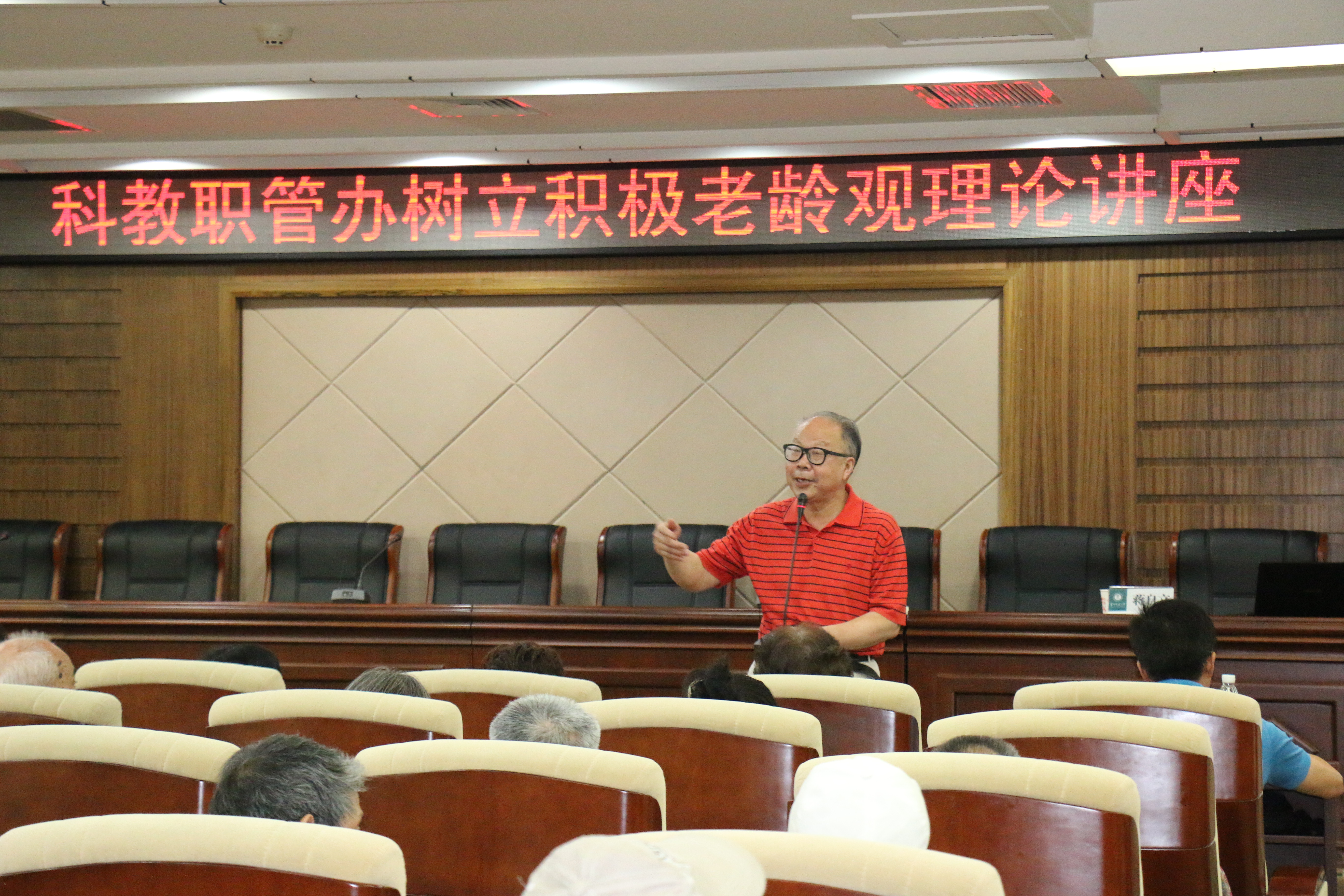 蒋老师以自己的亲身经历为素材,从勿沉溺于过往、勿担心于疾病、勿置气于不同、勿放弃于犹豫四部分讲述退休后如何树立积极的老龄观。他鼓励老同志在离退休后要保持积极乐观的心态,平和对待生活中的“异”,做到在目标上坚定不移、在时间上坚持不懈、充实地过好每一天。讲座过程中气氛活跃,内容精彩,引来阵阵掌声。