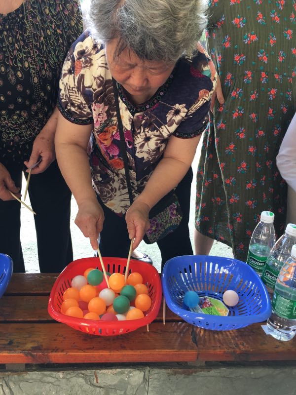 讲座结束后,离退休工作处工作人员组织老同志前往北区操场举行趣味运动会。运动会项目有投沙包、套环、扔羽毛球、筷子夹球。参赛队伍按年龄分为80岁及以上组、70(含)至79岁组、70岁以下组,各组的比赛项目和规则有所不同。天气晴朗,老同志们热情的参加各个项目,比赛气氛融洽而热烈,赛场中不时传来阵阵欢笑声和欢呼声。最终,参赛获胜者获得纪念品,比赛在愉快的氛围中结束。