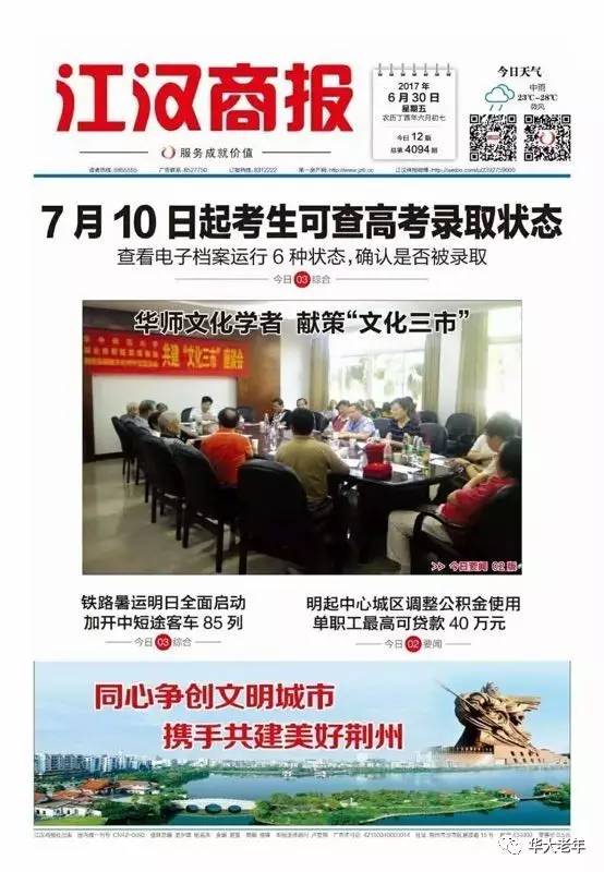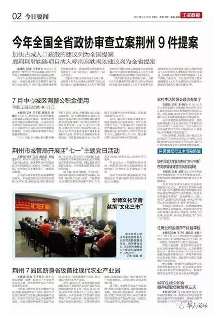 《江汉商报》头版报道我校老教授老专家为荆楚文化经济建设建言献策的活动。