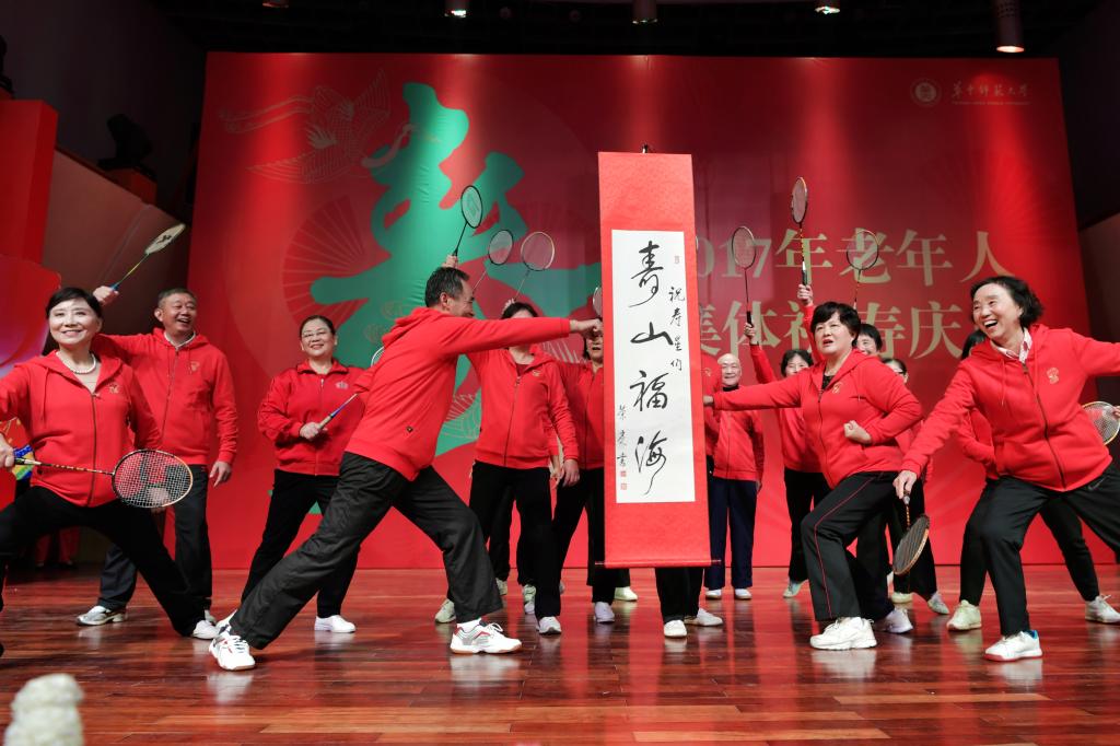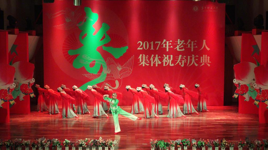 之后,学校领导和老寿星们一同观看了由附小、文学院、校老年时装队、校老年合唱团等十个单位退休老师带来的精彩演出。(离退休工作处:寇娜)