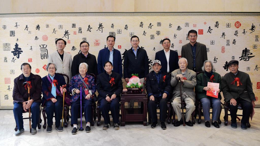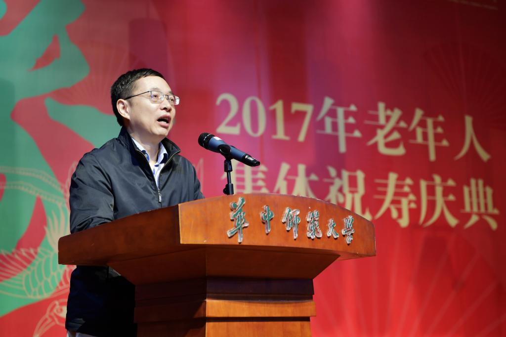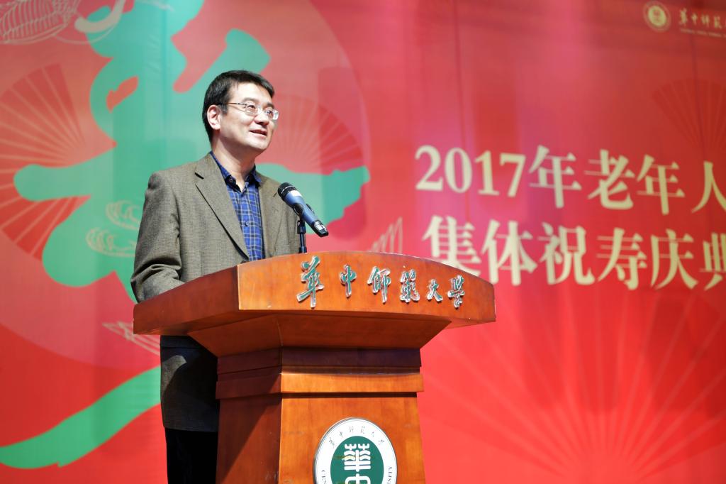 杨宗凯在致辞中首先对出席庆祝活动的老寿星们送上了真挚的重阳节祝福。杨校长指出今年的重阳节恰逢党的十九大胜利召开,刚刚闭幕的党的十九大全面总结了过去五年的辉煌成就和历史性变革,特别是大会提出并将“习近平新时代中国特色社会主义思想”写入党章,实现了党的指导思想又一次与时俱进,这是马克思主义中国化的最新成果,是对党的发展的历史性贡献,也是十九大最大的亮点。