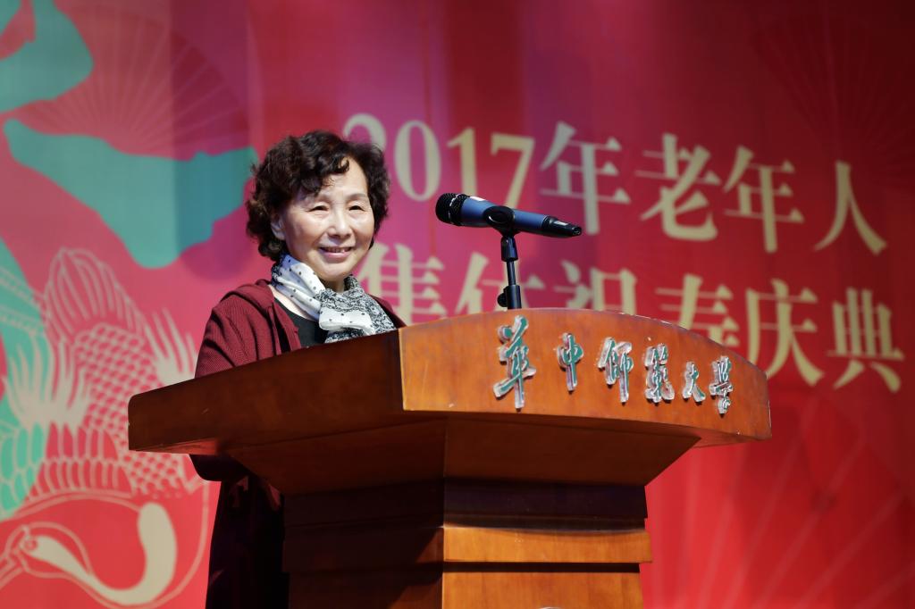 随后,寿星代表、化学学院退休教授杨兴钰回顾了自己退休10年来丰富多彩的工作和生活,她表示要感谢以习近平总书记为核心的党中央,带领全国人民实现了国家富强和人民幸福,还要感谢学校党政领导和有关职能部门对老龄工作的一贯重视和关心,提升了我校离退休老同志晚年生活的幸福指数。同时她还建议老年朋友们要珍惜我们这个伟大的时代,最好的珍惜就是知足,心存感恩,即感谢一切帮助过我们的人,感谢我们的祖国,感谢伟大、光荣、正确的中国共产党。