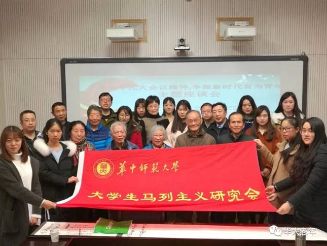 2017年12月29日下午,学校关工委与学校大学生马列主义研究会在一号教学楼三楼报告厅共同举办了“真知十九大精神,争做新时代有为青年”的座谈会。参加座谈会的有学校离退休工作处的领导纪红、肖异清,学校关工委领导谭根稳、朱斌、曾爱华,老教师田科英、刘兴策、李谟介、成带云、吴爱莲等。
