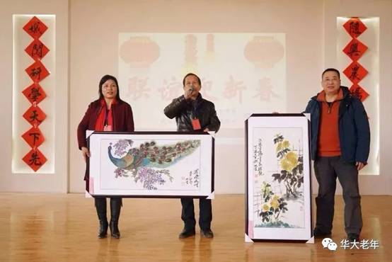 联欢会上,谭根稳同志受离退休工作处的委托,代表学校各涉老组织将老同志创作的一批书画作品赠送给农场。聂随娥总经理和广大员工非常高兴。我校部分老同志还即兴登台表演了精彩的节目,获得阵阵掌声。本次活动非常成功!(离退休工作处:曾爱华)
