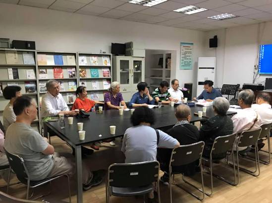 2018年9月29日,科教职管办党总支组织生活会在东区老年活动中心阅览室进行。