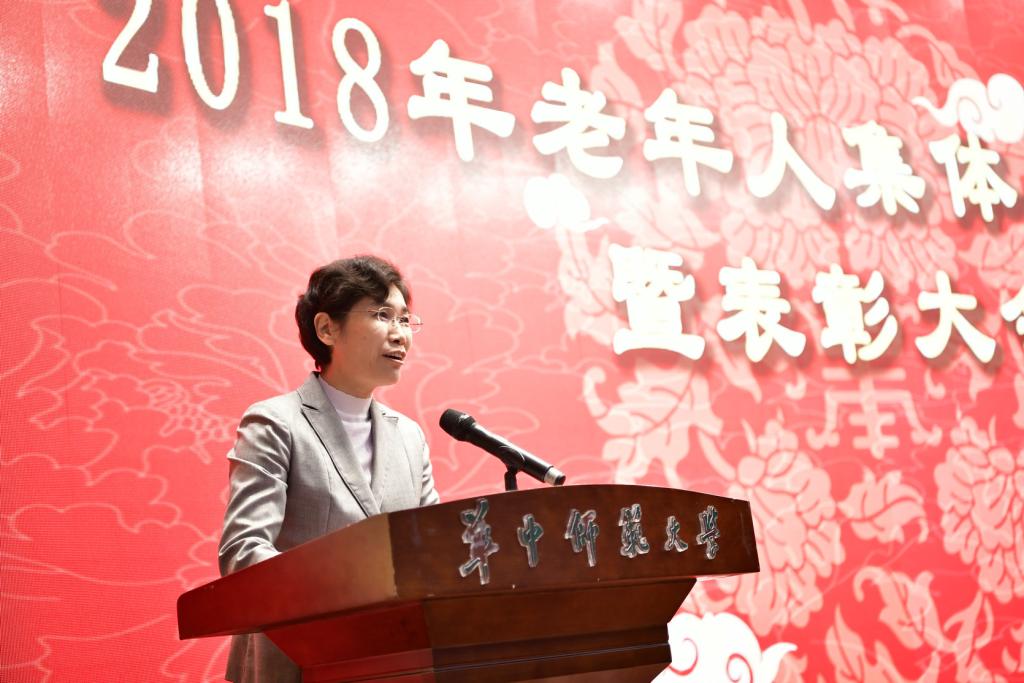 校党委书记黄晓玫代表学校党委和行政,向出席庆祝活动的寿星和离退休老同志代表致以节日的问候,衷心感谢他们为学校的建设发展做出的贡献,希望他们能用自己的丰富知识和宝贵经验,为学校深入推进综合改革出谋划策、问诊把脉,一如既往地参与支持学校的建设和发展。黄晓玫表示,近年来,党中央高度重视离退休工作,习近平总书记也十分关心老干部工作、老龄工作,并在十九大报告中提出了明确要求。为此,学校党委不仅重视加强老同志的组织建设,也致力于开展丰富多彩的老同志精神文化活动,让老同志在政治上有荣誉感、组织上有归属感、生活上有幸福感。今后,学校党委将继续坚持以习近平新时代中国特色社会主义思想和党的十九大精神为指导,把党和政府的关心关爱落到实处,不断提高老同志工作质量和工作水平,让每一位老人生活得舒心和安康。