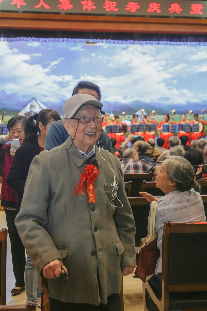 体育学院退休教授封官声作为寿星代表发言。他讲述了自己退休二十余年“老有所为”的生活,并用“夕阳无限好”鼓励在场的老寿星和老同志们不断充实生命。最后,他以一曲《夕阳红》表达了对所有老同志的祝福。