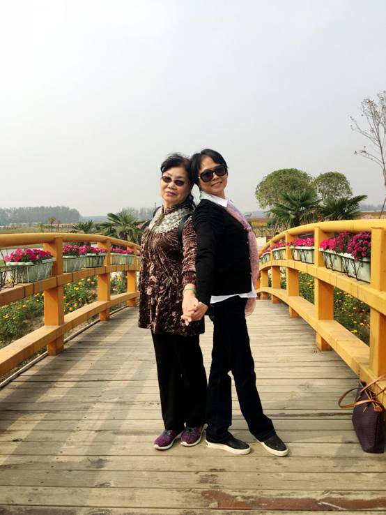 那边,周美桂校长来了一组“疼系列”;花的长廊里,李玉芝、韩菁两位老师摆了一张“背靠背”的独特照型。