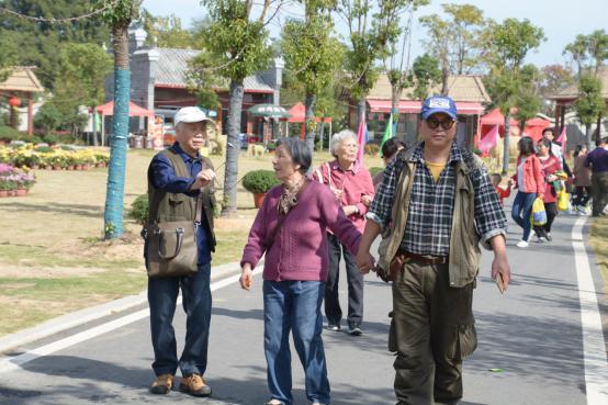 瞧,这位“年轻”的老师一直用他温暖的大手牵着这位84岁的的老教师,一边聊天、赏花,一边不时提醒老教师慢慢走,歇歇脚,整个游玩过程两双手都没有松开。