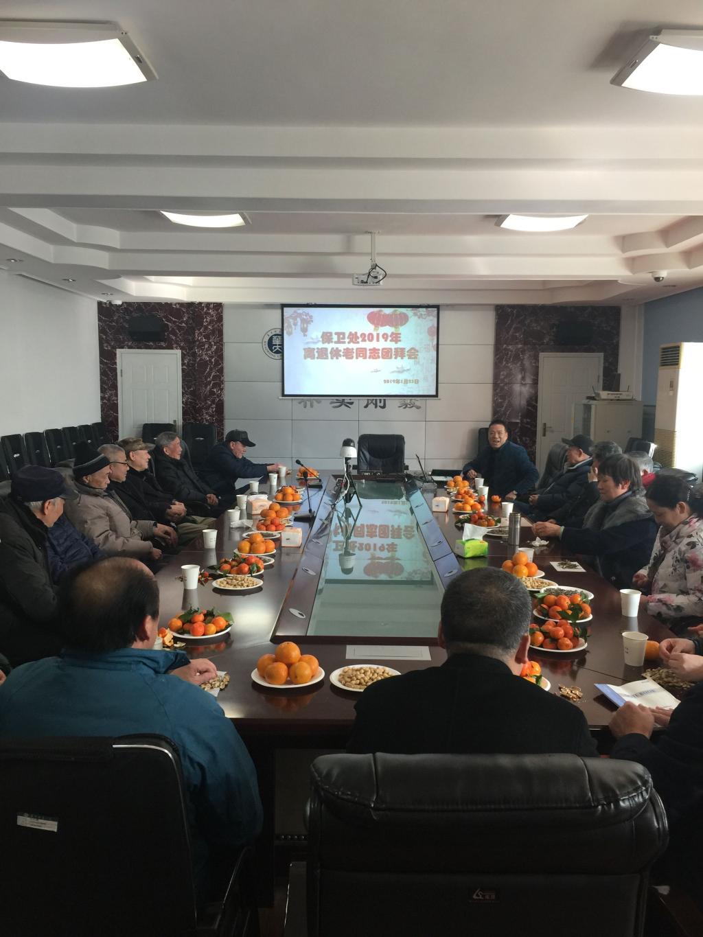 2019年保卫处退休老同志团拜会于1月23日下午2点半在处三楼会议室。保卫处长王东爽、副处长李丹、各中心主任们以及全体退休老同志参加了新年团拜会,团拜会由保卫处副处长李丹主持。