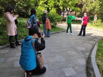随后,退休老教师在志愿者的陪伴下观赏华师校园风光,并拍摄了多组照片。在活动完成后,退休老教师对志愿者们表示感谢,她们讲到,这次活动让她们十分开心,并让自己回想起了青春年少时的校园时光。