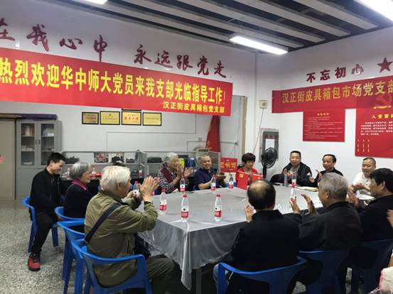 2019年4月23日上午,经过前期的精心筹备,科教职管办党支部,“走进汉正街”特色党日活动,如期在汉正街暨济商城三楼,皮具箱包市场党支部活动室开始。