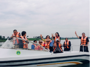 随后老师们在基地解放军的带领下来到木兰湖体验冲锋艇项目。老师们惊叹冲锋艇的速度与激情、沉迷木兰湖辽阔水域的自然风景,跟着冲锋艇徜徉在碧波之上。