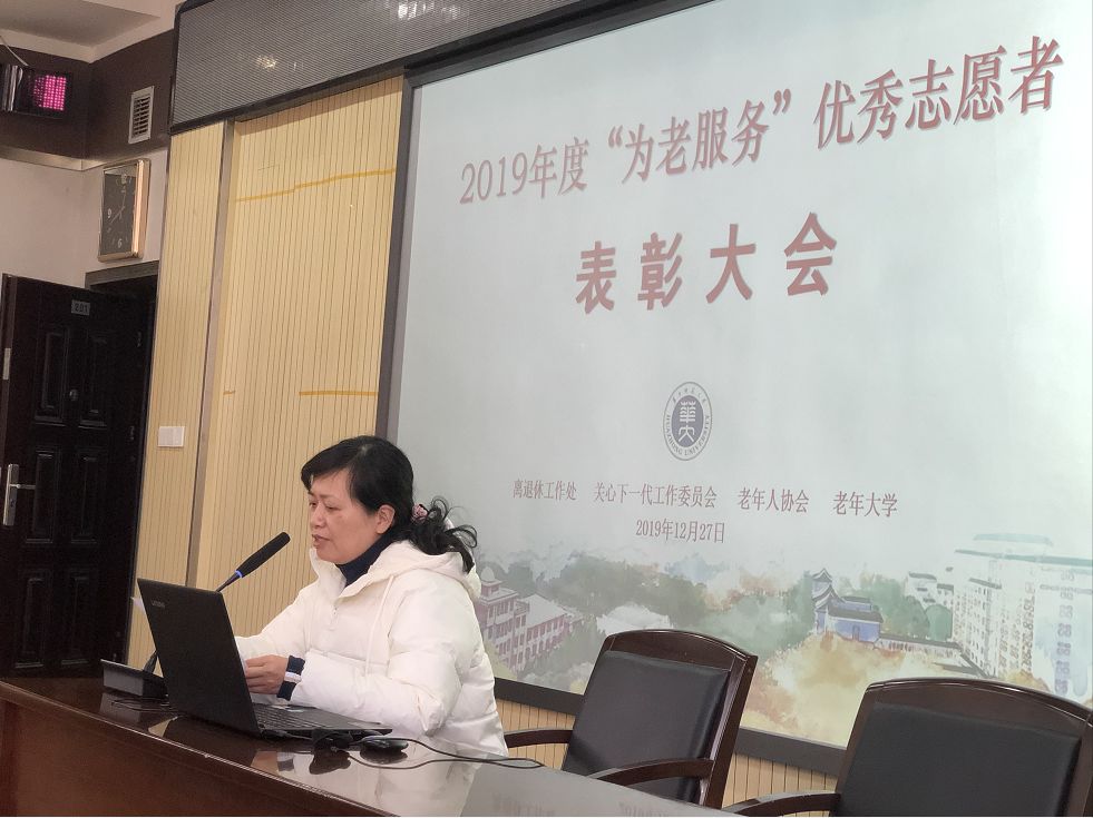 2019年12月27日,由离退休工作处、关工委、校老协、老年大学联合举办的2019年度“为老服务”优秀志愿者表彰大会在行政楼二楼会议室举行。