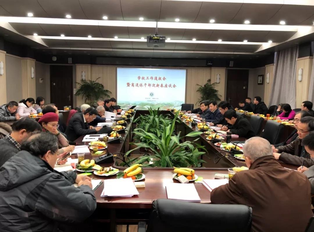 1月14日,学校工作通报会暨离退休干部迎新春座谈会在行政楼一楼会议室举行。校党委书记赵凌云,副校长任友洲、李鸿飞,部分退休校领导、离休干部代表、退休教授代表及学校离退休工作领导小组的各职能部门负责人参会。会议由校党委副书记、纪委书记陈厚丰主持。