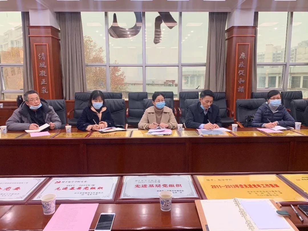 2020年12月11日下午,由湖北省老干部局机关党委专职副书记、人事处处长朱俊梅、人事处一级主任科员秦立新2人组成的审核评价组,来到我校化学学院对该院退休党支部的省级“示范党支部”创建进行现场审核评价。