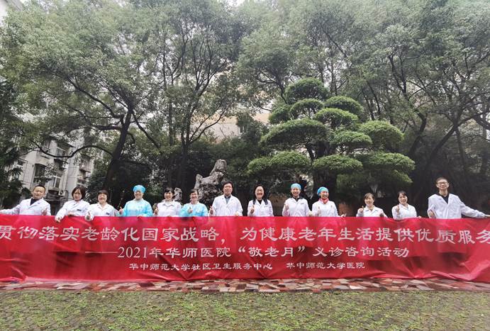 10月14日下午,邓虹书记、桂珂院长全体领导班子带队,家庭医生团队及公卫科、医技科和护理部同志的共同参与,在华师北区小花园开展了“贯彻落实老龄化国家战略,为健康老年生活提供优质服务”暨“敬老月”义诊咨询活动,服务项目有现场咨询问诊、免费测量血糖和血压、家庭医生上门服务、发放宣传资料等。