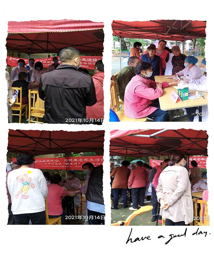 为深入贯彻落实党的十九大精神和习近平总书记关于老龄工作的重要论述,弘扬中华民族孝老爱亲传统美德,共建共享老年友好社会,增强广大老年人的获得感和幸福感,2021年10月14日“重阳节”当天,校医院领导高度重视,积极策划并组织了社区义诊活动。