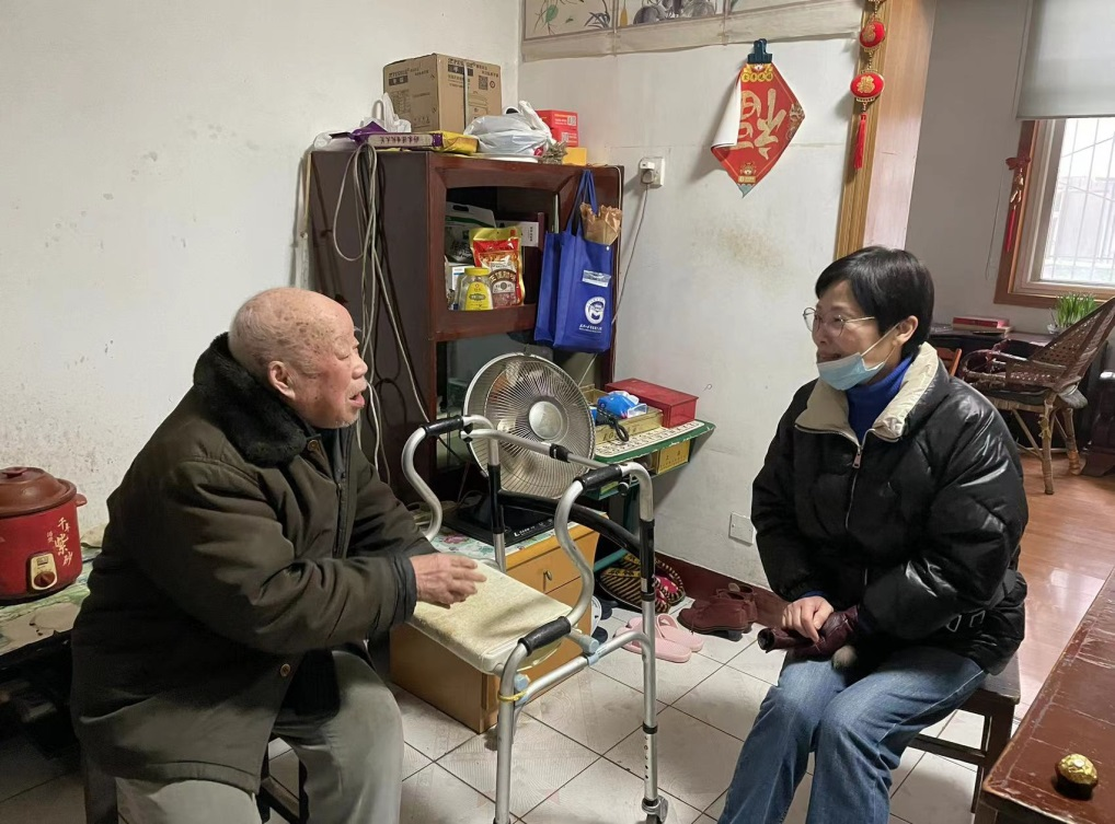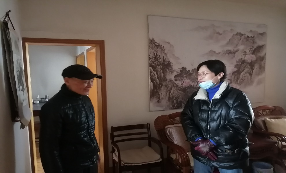 周处长和退休党支部书记程翠英一行拜访了住在校外的陶笑虹和庞子朝老师。