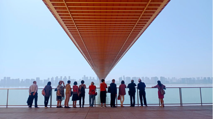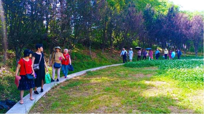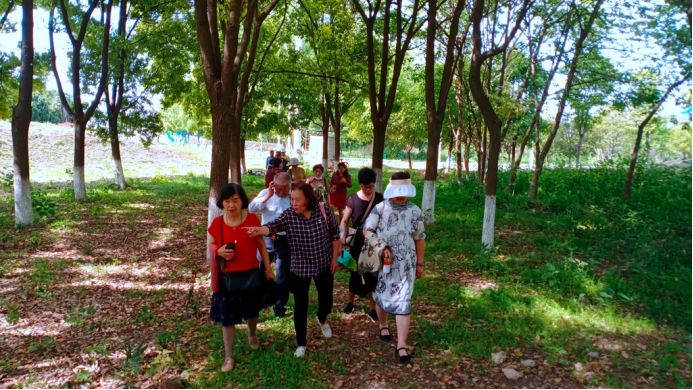老同志们退休后各自飞飏,难得一见,此次聚首,相谈甚欢。大家一路在国博江滩公园相携而行,前呼后应,绿道上留下了大家矍铄的身影。