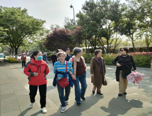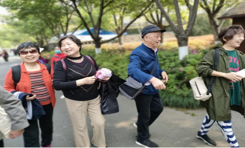 乘车抵达东湖落雁景区的老同志们亲切地彼此热情招呼,沐浴和煦的春风,呼吸清新的空气,大家个个精神饱满、神采奕奕。置身城市大氧吧之中,老同志们或成群结队漫步林间小道,观赏沿路风景,或三五好友兴致勃勃地拍照打卡,尽情享受着生活的时光静好,或畅聊起了户外游、日常饮食以及学校和城市的发展,关心彼此健康及家庭情况。