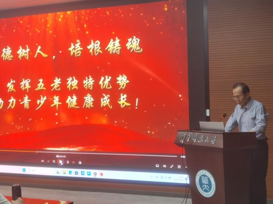 最后,查道林副书记作总结讲话。他对我校关工委工作给予高度评价,充分肯定了我校关工委在2024年取得的优异成绩,并强调了关心下一代工作对于国家发展和民族复兴的重大意义,希望全校上下继续重视关工委工作,紧扣“新”与“久”的辩证关系,以“五好”建设为抓手,培育华师特色品牌,继续做好以下几点:一是以“新”破题,在守正创新中激活育人动能;二是以“久”筑基,在久久为功中夯实长效机制;三是以“好”聚力,在协同共进中实现工作提质增效;四是以“特”铸魂,在华师底蕴中彰显育人特色。希望在学校党委和学校关工委的正确领导下,各二级关工委能优化方案,共同推动关工委工作高质量发展,努力创造更多佳绩,为培养担当民族复兴大任的时代新人贡献华师力量。
