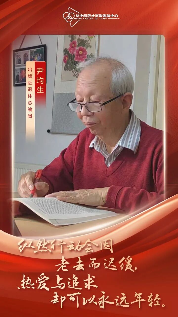如今已经89岁高龄的尹均生把退休后的近三十载光阴,过成了一段笔耕不辍的充实岁月,耄耋之年的他,思想仍保持着“青春的步调”——从撰文纪念抗战胜利,到提笔赞扬外交官何理良事迹,他始终牢记党员信仰,书桌上那本页脚微卷的《共产党宣言》,给予他源源不断的力量;协助召开“斯诺高层论坛”,发表几十篇研究斯诺夫妇的论文,他在学术上“咬定青山不放松”的坚守,让孜孜不倦的求是之心跃然纸上。他以笔墨诠释“老有所为”,而这“所为”本身,也正是他“老有所乐”的答案。“看书、思考、写作都是我的快乐。”尹均生将这份“乐”归功于豁达的心态、学校的关怀与伴侣的相守。他期望青年人能“脚踏实地,步履不停”,“纵然行动会因老去而迟缓,热爱与追求却可以永远年轻。”