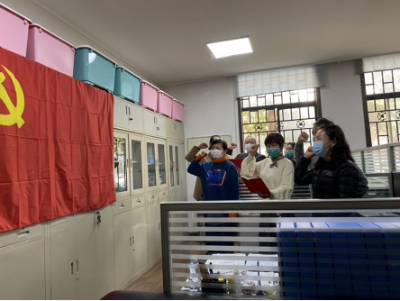 全体党员面向党旗庄严宣誓、重温入党誓后,齐声诵读了党章部分内容,还现场缴纳了本月党费。