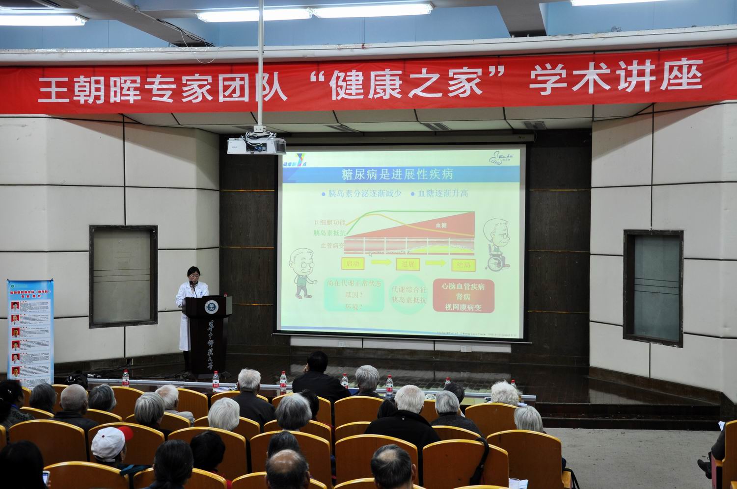 本次《王朝晖专家团队“健康之家”学术讲座》由校离退休工作处、校医院和协和医院综合科共同主办,辉瑞投资有限公司、拜耳医药保健有限公司协办。我校80余名离退休老同志老参加了健康讲座和相关咨询活动。(作者:李赤兵)