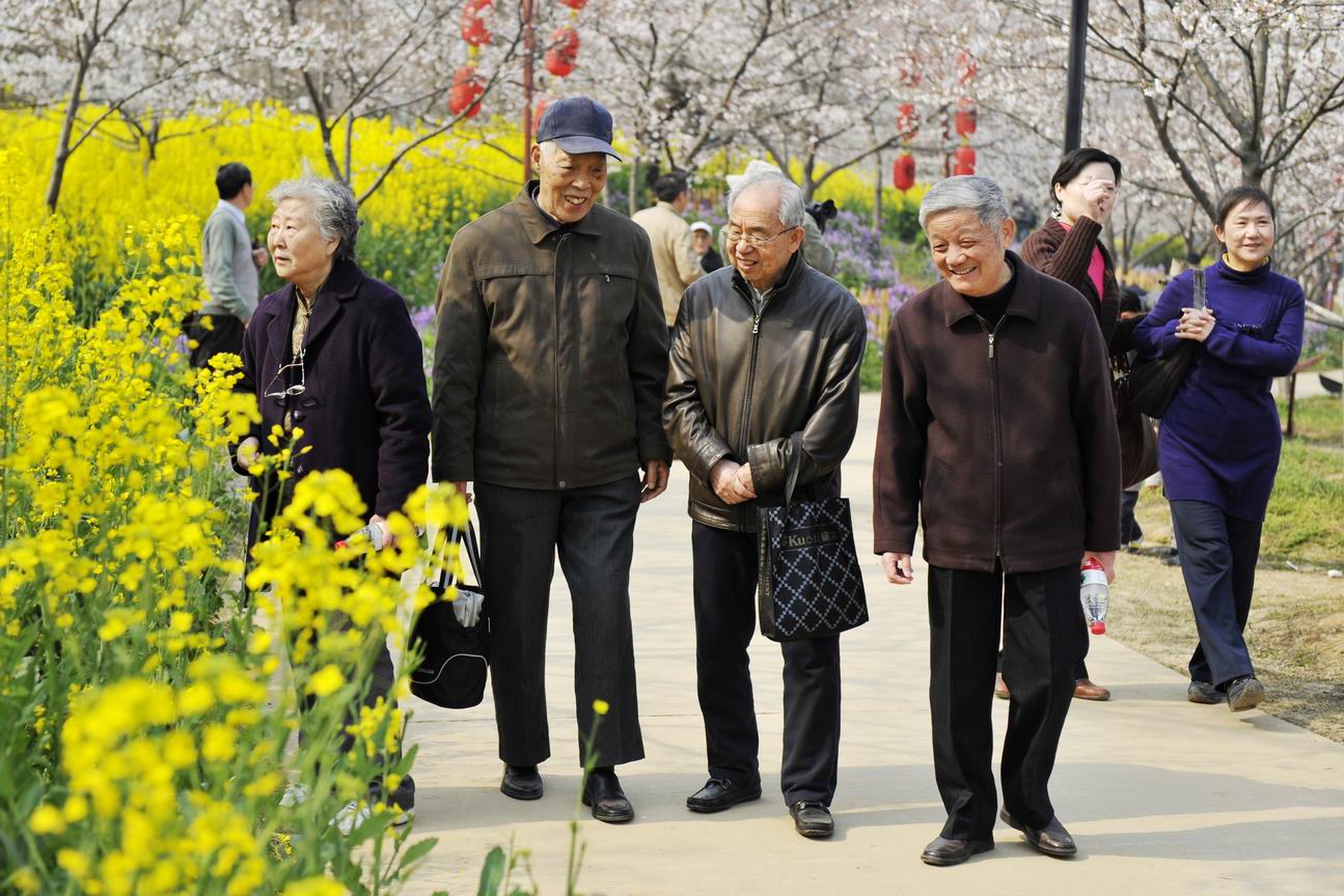 徜徉在地形起伏、溪流潺潺、曲径通幽等景观掩映中的烂漫樱花丛中,老同志们心情舒畅,笑逐言开,漫步在樱花大道和油菜花小径上,或驻足观赏、或留影纪念,尽情饱览大自然美景。