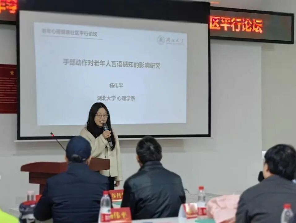 湖北大学杨伟平教授对肢体动作尤其是手部进行了深入研究,她进行了题为《手部动作对老年人言语感知影响的研究》的报告。
