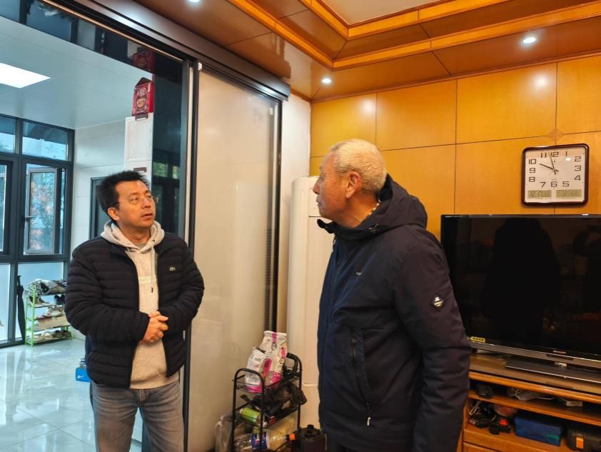 在东区42栋,慰问组探望了88岁的张重威老师。张老师在交谈中依然关心着学校发展大局。慰问组为他送上了慰问物资,并叮嘱他保重身体。张老师说:“组织每年都惦记着我们,心里特别温暖。”慰问组还特别检查了张老师家中的用电安全和适老设施情况,确保居住环境安全舒适。
