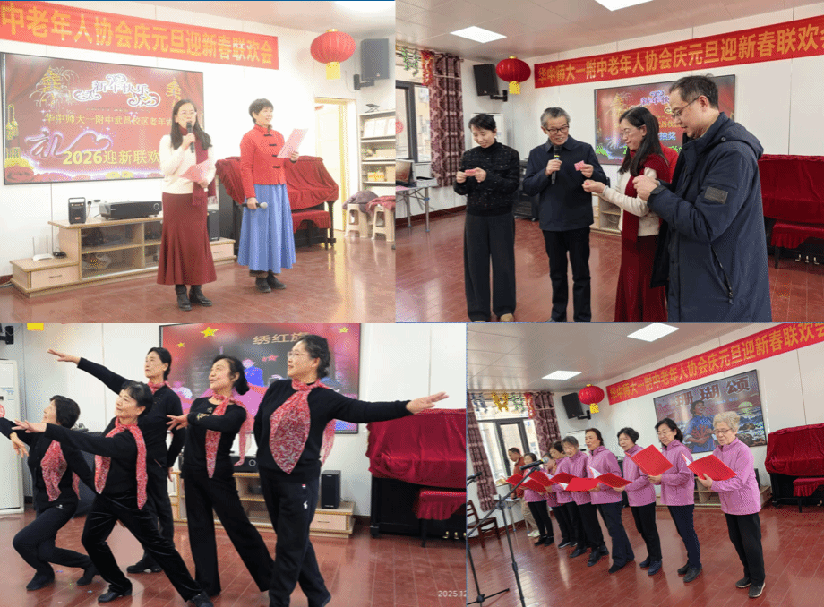 2025年12月28日,在辞旧迎新的钟声即将敲响之际,学校武昌老年协会在武昌老年活动中心举办元旦联欢会,校党委书记杨国红、副书记王晓莺、党办主任熊永华、90余位老同志等参加活动。