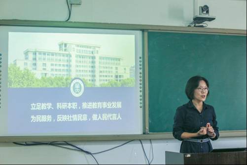然后,教育技术系主任张屹教授作了题为《探寻教育信息化教与研的魅力》的专题报告,从自己的教学工作、科研工作、社会工作三个方面,介绍了自己在教育信息化领域所做出的探索与实践。她强调老师们应该严格要求自己,努力做好教学工作。她还讲解了在教学过程中如何创新,如何分析教学研究中的数据等问题。