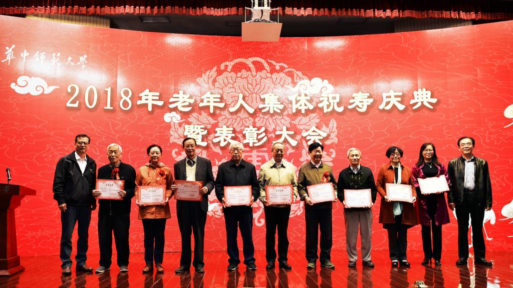 10月15日,我校2018年老年人集体祝寿庆典暨表彰大会在科学会堂一楼报告厅举行。校领导黄晓玫、赵凌云、蔡红生、覃红、彭南生、夏立新、陈厚丰,校长助理林更茂、任友洲出席庆典。各单位分管领导及各涉老组织负责人参加。庆典由校党委副书记陈厚丰主持。