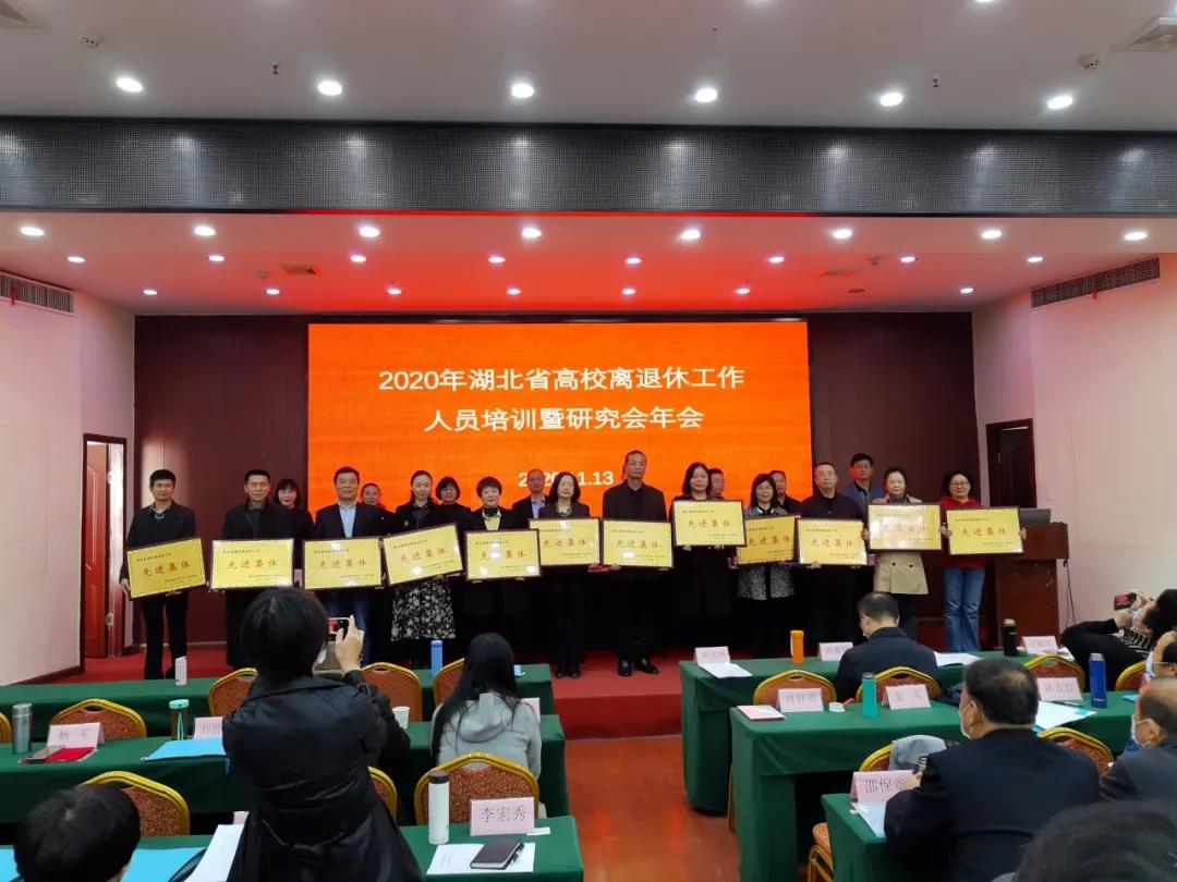 11月12日、13日,2020年湖北省高校离退休工作人员培训暨研究会年会在黄冈齐安湖召开,大会表彰了湖北省高校离退休工作先进集体和先进个人,我校离退休工作处获评先进集体,离退休工作处副处长肖异清获评先进个人。