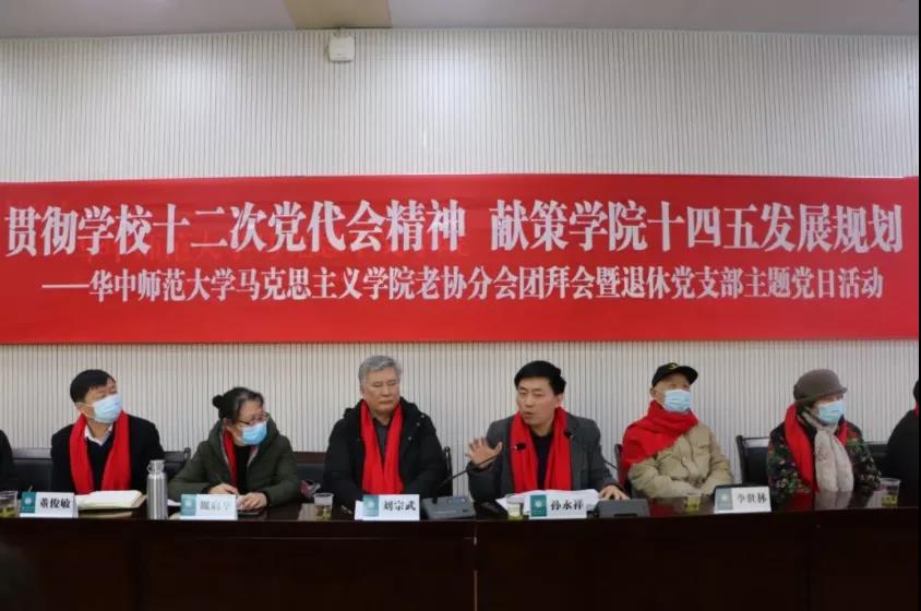 12月24日,“贯彻学校第十二次党代会精神 献策学院十四五发展规划”——马克思主义学院老协分会团拜会暨退休党支部主题党日活动在学院三楼学术报告厅举行。学院党委书记孙永祥、正处职组织员董俊敏、工会主席谢从高、理论宣传与社会服务部部长徐秉国,学院老协分会会长刘宗武、退休党支部书记魏启华以及近40位退休教师等参加。活动由刘宗武主持。