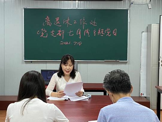 2021年7月19日上午,离退休工作处党支部在东区老年活动中心小教室,开展了7月份主题党日活动,全体在职党员和部分退休党员参加了会议。
