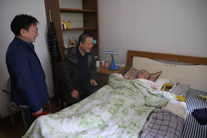 崔希武老师今年已九十高龄。十年树木,百年树人。在几十年的教学生涯中,崔希武老师始终以一个优秀教师的标准严格要求自己,工作兢兢业业,认真负责,向社会输送了一大批拔尖人才,为学院发展、学科建设做出了突出贡献。党委书记段维、院长胡宗山一行来到崔希武老师床前,与老师亲切交流。段维书记询问了崔老师的身体和生活近况,嘱咐崔老师要保重身体,为崔老师祝送上了节日祝福:“岁岁重阳,今又重阳,祝崔老师重阳节快乐!身体健康,福寿绵长!”胡宗山院长向崔老师介绍了学院近年来的发展变化,作为全国政治学人才培养和学术研究的重镇之一,学院以过硬的政治素质、高超的育人水平打造了一支高质量的教育教学科研队伍,在人才培育和科研创新方面取得了重大突破。胡院长表示,学院政治学学科的发展,离不开老一辈教师打下的坚实基础和代代相传的政国精神,离不开每一位政国教师的支持。